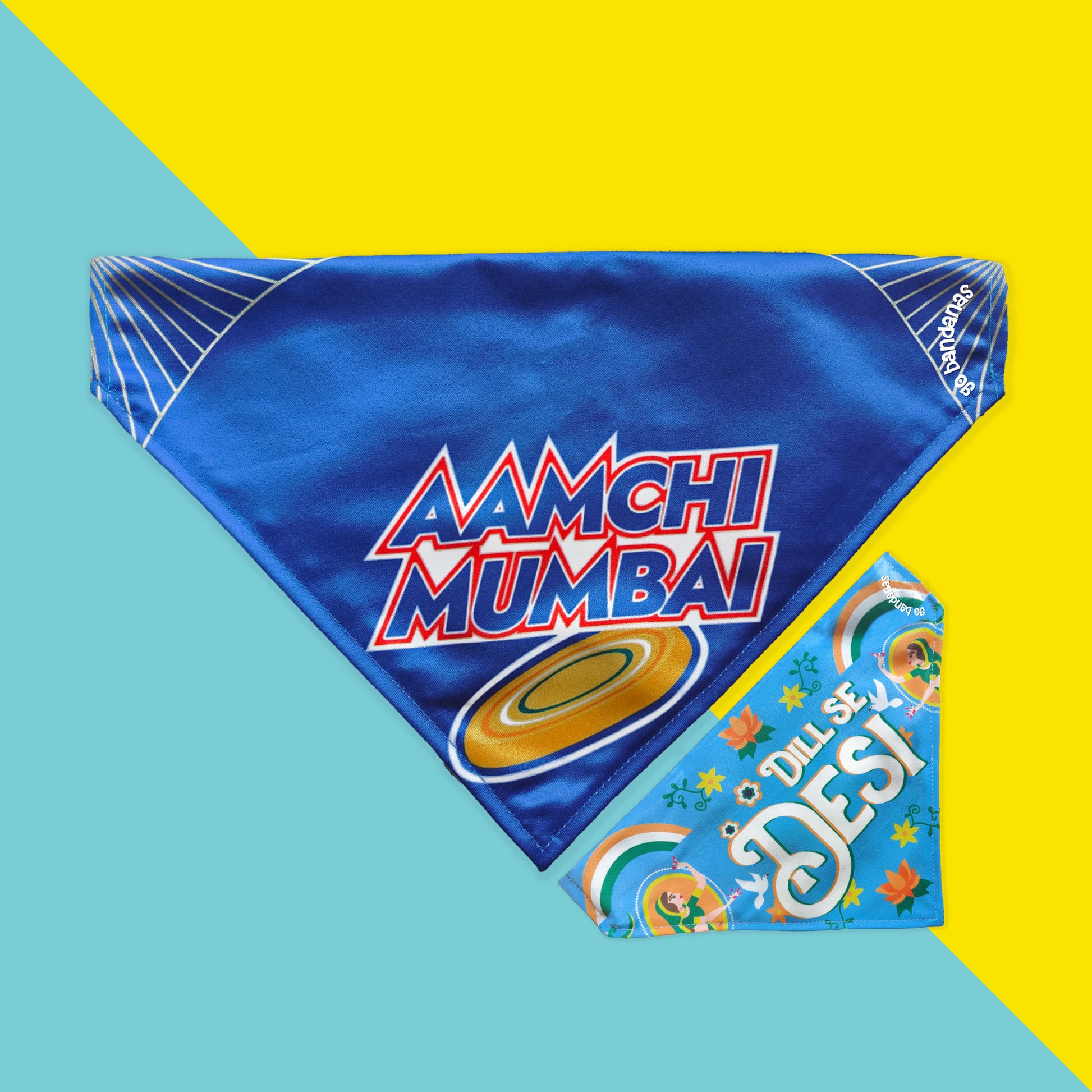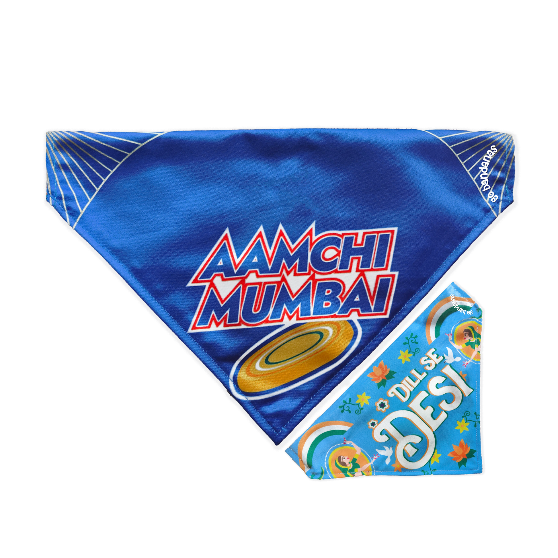 Go Bandanas Reversible Indian Pet League (IPL) Aamchi Mumbai (Blue) & Dill Se Desi (Multi Colour) Bandana for Pet Dogs & Cats