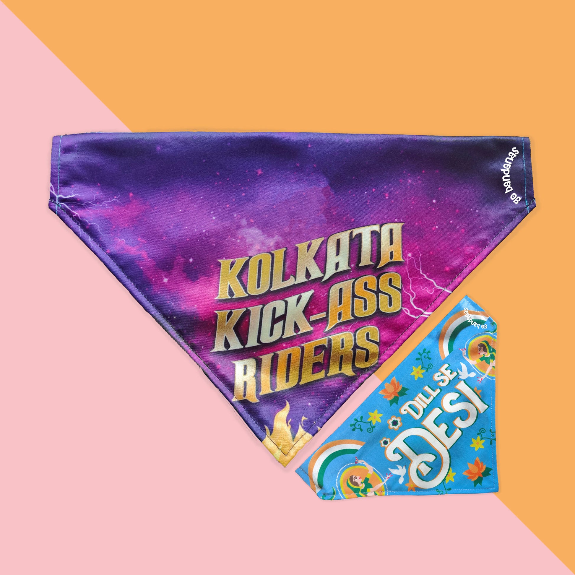 Go Bandanas Reversible Indian Pet League (IPL) Kolkata Kick-Ass Riders (Purple) & Dill Se Desi (Multi Colour) Bandana for Pet Dogs & Cats