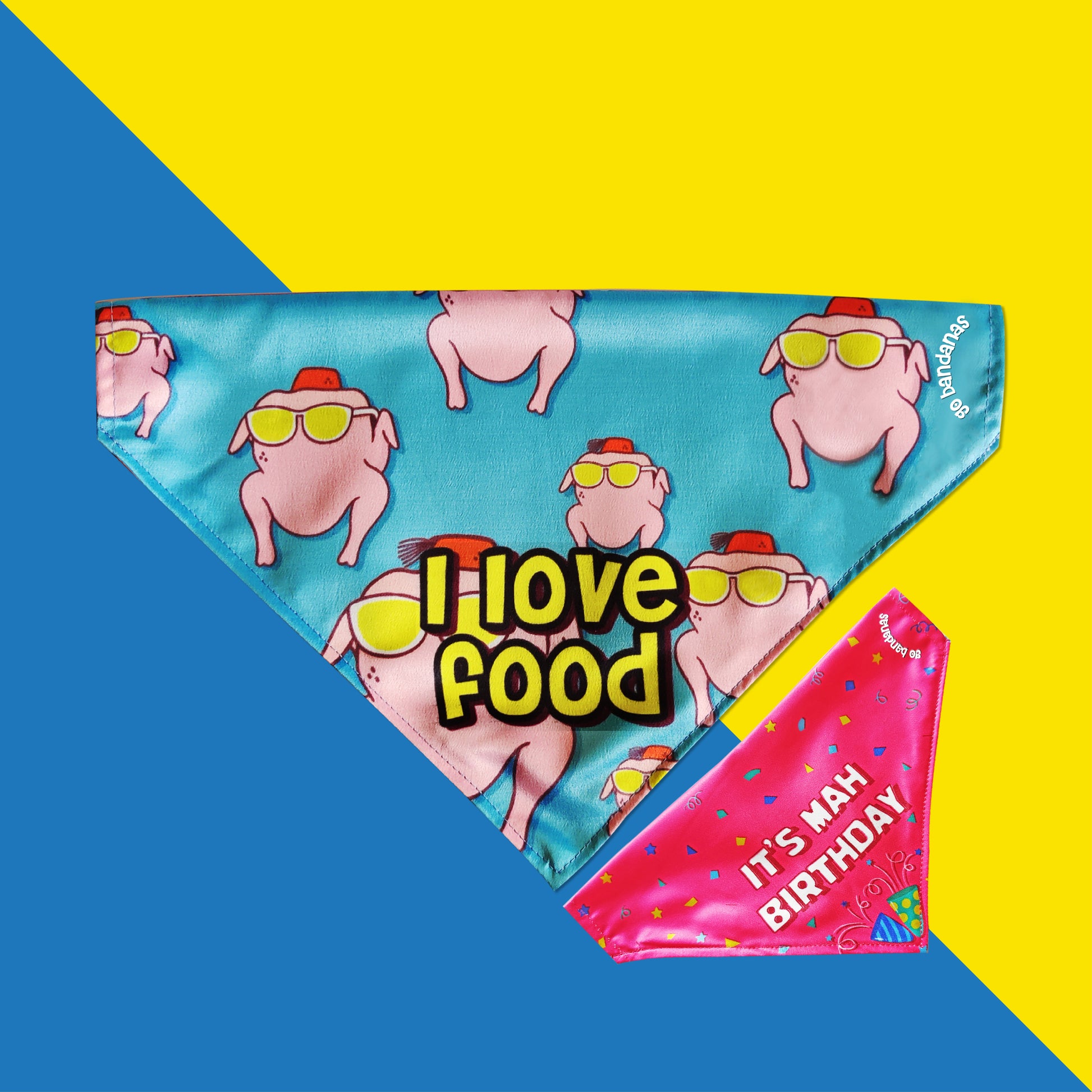 HOT NEWS PET PARENTS, hold onto your sunglasses. We’re having a steamy moment. We’ve got all the gears to celebrate the canine or kitty. Our "Birthday Ready" bandanas are specially designed for your pooch's special day. It's the perfect accessory for their celebration. Trust us, your pet will thank you for this later. It's quirky, fun and colourful. The back side comes with the print 'I love Food' for all the F.R.I.E.N.D.S TV Show and forever hungry fur buddies of your life. ;)