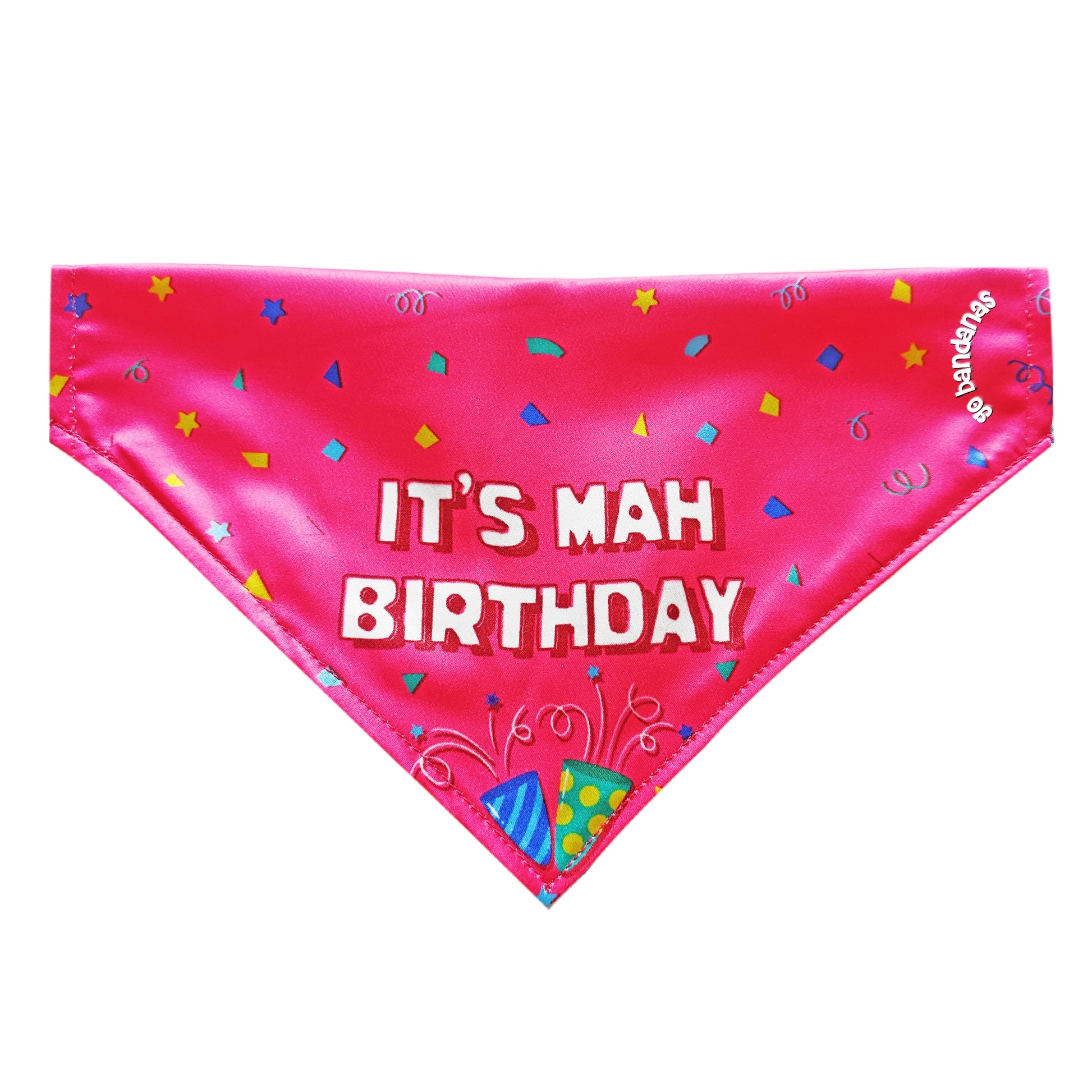 Go Bandanas Reversible It's Mah Birthday (Pink) & I Love Food (Blue) Adjustable Bandana for Pet Dogs & Cats
